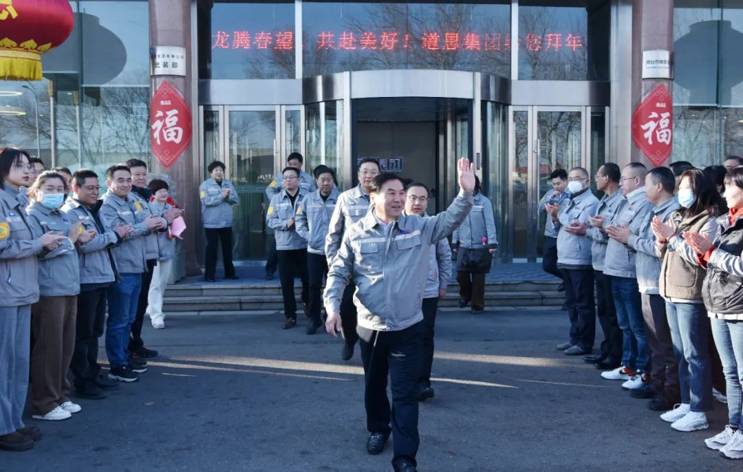 2月17日,大年初八,是春節(jié)后開工首日,道恩集團舉行甲辰龍年新春團拜暨開工會議。董事長、總裁于曉寧率班子成員深入總部駐地、產(chǎn)業(yè)園區(qū),向廣大干部員工送去新春的祝福和美好的祝愿,勉勵大家以飽滿的熱情、昂揚的斗志、充足的干勁高質(zhì)量完成全年各項目標任務。