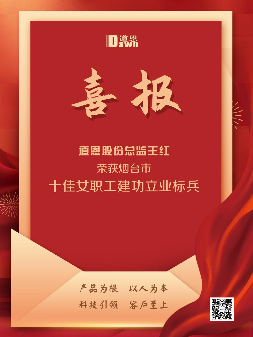“被評為‘煙臺市十佳女職工建功立業(yè)標兵’榮譽稱號,我倍受鼓舞、倍感光榮、倍增動力。”在3月6日召開的煙臺市總工會第五屆女職工委員會第四次全體會議暨先進女職工事跡報告會上,道恩股份研發(fā)總監(jiān)王紅作為獲獎?wù)叽磉M行交流發(fā)言。這是繼2019年榮獲“煙臺市女職工建功立業(yè)標兵”之后,王紅再獲新的殊榮。