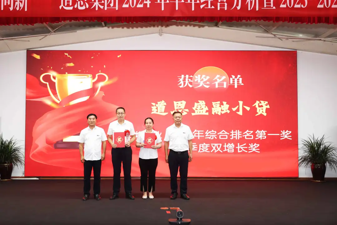 會議公布了安全生產(chǎn)活動月優(yōu)勝獎、6月業(yè)績激勵獎、效益創(chuàng)優(yōu)獎,雙增長獎、扭虧增盈獎、綜合排名第一獎、服務(wù)指導(dǎo)管理考核獎。道恩股份母公司、道恩盛融小貸公司、道恩英德爾公司、雙龍化工公司榮獲上半年綜合排名第一獎。