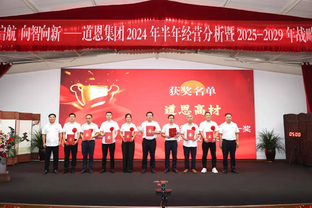 8月3日,道恩集團(tuán)在道恩商學(xué)院召開主題為“蓄勢啟航 向智向新”的2024年半年經(jīng)營分析暨2025-2029年戰(zhàn)略發(fā)布會,旨在總結(jié)經(jīng)驗、分析問題、表彰先進(jìn)、鼓舞干勁,助推企業(yè)數(shù)智化轉(zhuǎn)型,以新質(zhì)生產(chǎn)力強勁推動高質(zhì)量發(fā)展。道恩集團(tuán)董事長、總裁于曉寧出席會議并講話,集團(tuán)公司董事會成員、領(lǐng)導(dǎo)班子成員、各職能部門副部級以上干部、各經(jīng)營單位總監(jiān)級以上干部、青干班成員參加會議。