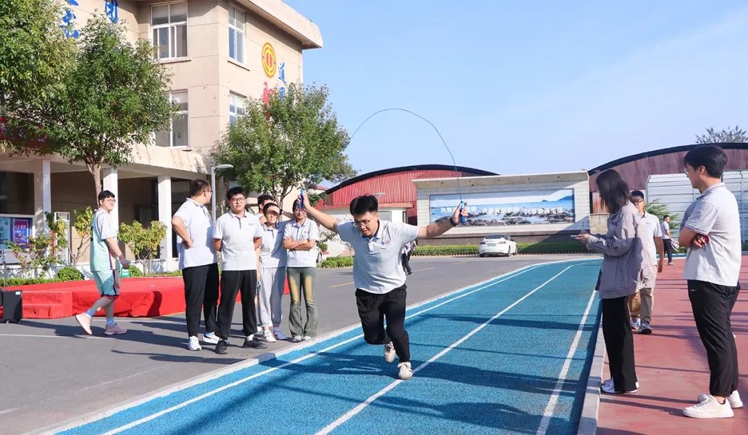 活動(dòng)設(shè)置籃球、羽毛球、跳繩/踢毽子200米接力、乒乓球四個(gè)比賽項(xiàng)目。其中,2024年新入職大學(xué)生、2023年入職大學(xué)生及老員工,分別組成“啟航隊(duì)”“沖鋒隊(duì)”和“奮進(jìn)隊(duì)”。賽場(chǎng)上,道恩股份領(lǐng)導(dǎo)班子成員紛紛加入比賽行列,新老員工同臺(tái)競(jìng)技,現(xiàn)場(chǎng)妙趣橫生,歡聲笑語(yǔ)不斷。