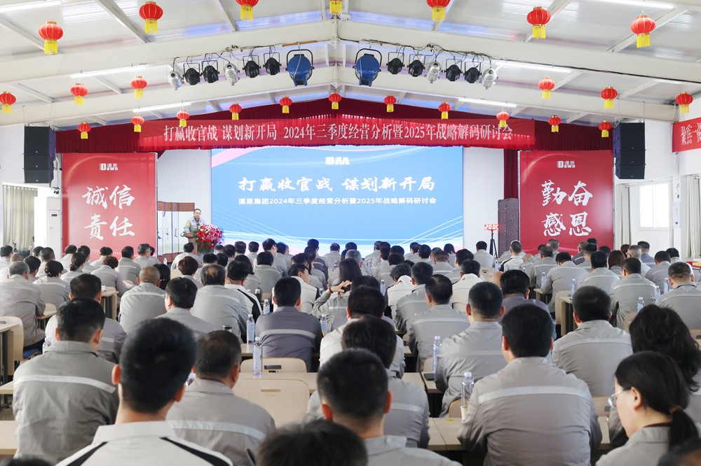 有總結(jié)分析、有激情口號、有澎湃歌聲、有戰(zhàn)略解碼。11月2日召開的道恩集團(tuán)三季度經(jīng)營分析會暨2025年戰(zhàn)略解碼研討會,別開生面,正能量十足,激發(fā)全體干部員工“團(tuán)結(jié)拼搏、追求卓越”,堅(jiān)定了打贏收官戰(zhàn)的信心和決心,集思廣益,凝聚共識,研討新思路、謀劃新開局,以新發(fā)展理念引領(lǐng)新征程。