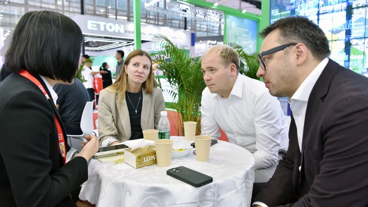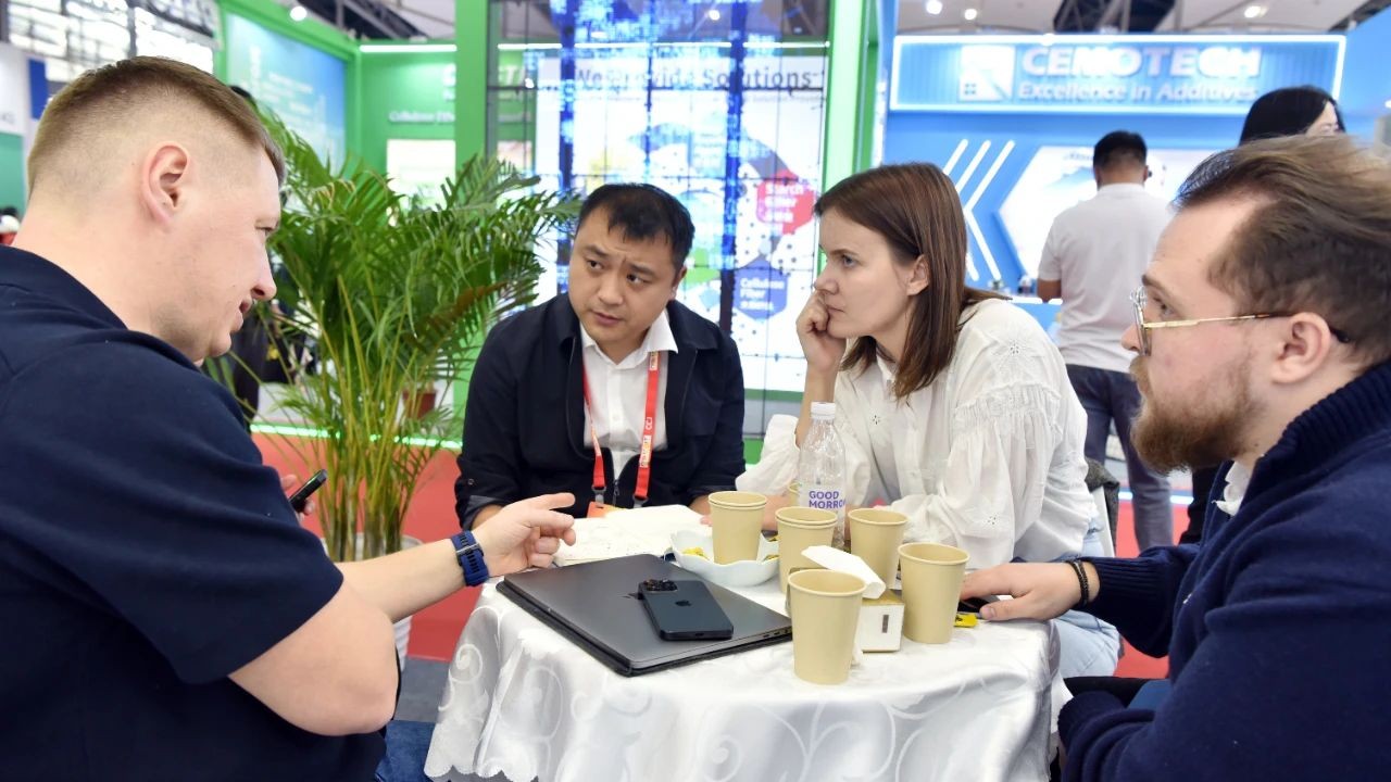 在參展現場,“一藍一白,藍白互映”的主題海報格外吸睛,《環保賦能鈦精彩》宣傳片講述著道恩“清潔生產、綠色發展”的故事,工作人員悉心為新老客戶講解產品性能、應用推廣等情況。首日來訪的客戶不乏洋紫荊、新東方、坂田油墨、天津新宇等知名客戶,或技術交流、或約定互訪、或索樣測試、或深化合作,“對道恩產品及服務非常滿意,希望加大鈦白粉的采購量!”歐洲某客戶表示。