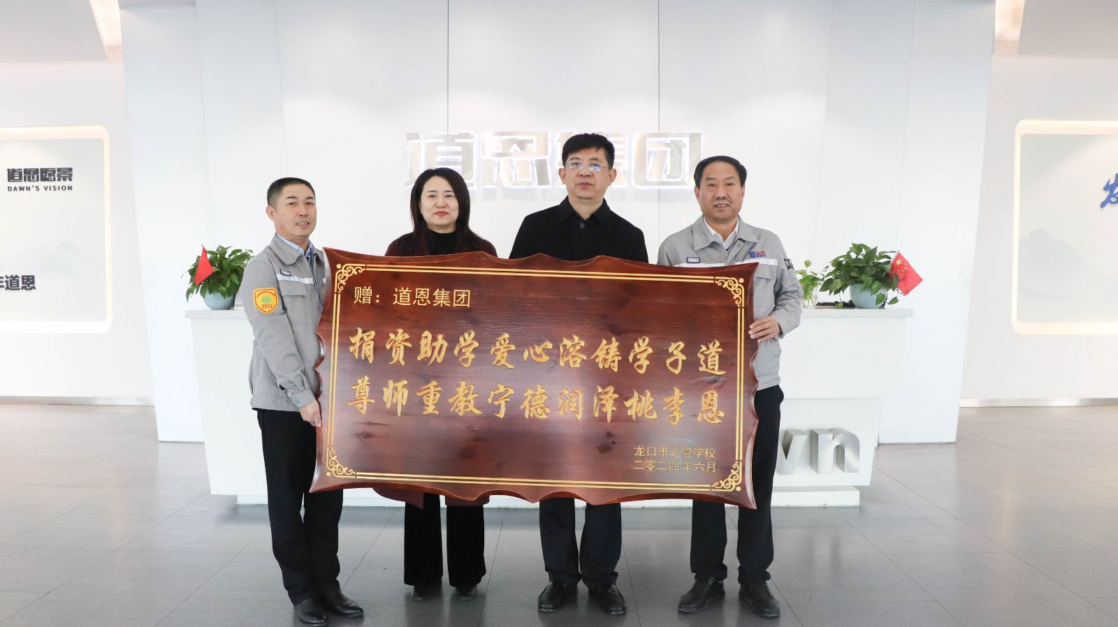 “道恩的大力幫助堅定了我們?yōu)榻逃聵I(yè)奮斗的決心,增強了學(xué)校‘辦人民滿意的教育’的信心。”12月5日上午,龍口市北皂學(xué)校校長解玉慧帶著寫有“捐資助學(xué)愛心熔鑄學(xué)子道,尊師重教寧德潤澤桃李恩”字樣的牌匾和一封感謝信,走進道恩集團總部深表敬意與感謝。龍口市教體局黨組成員、市教研室主任趙劍鋒,道恩集團董事長、總裁于曉寧,副總裁王可友出席活動。