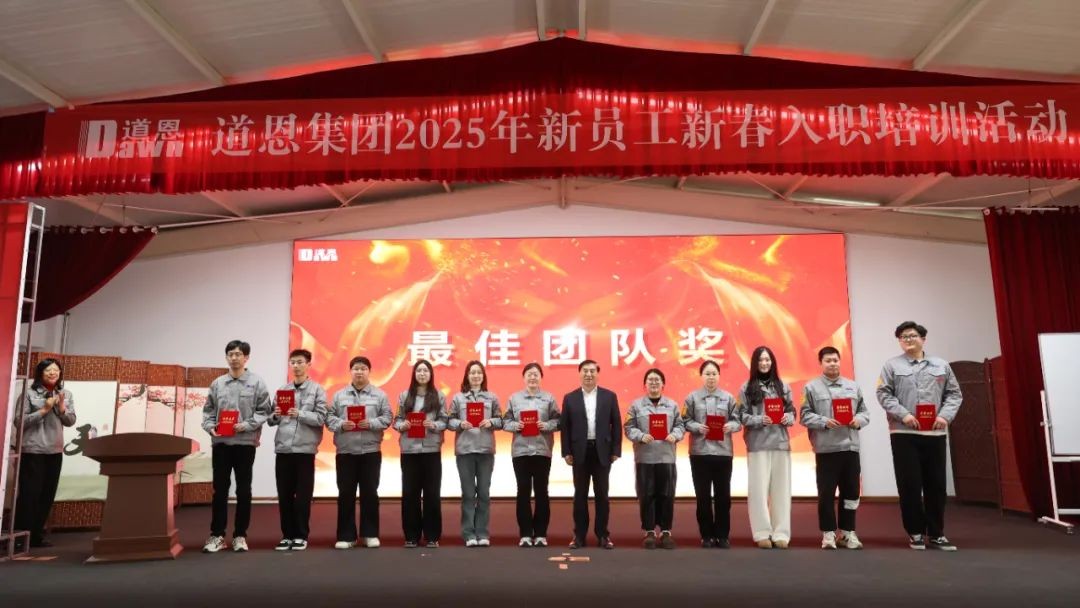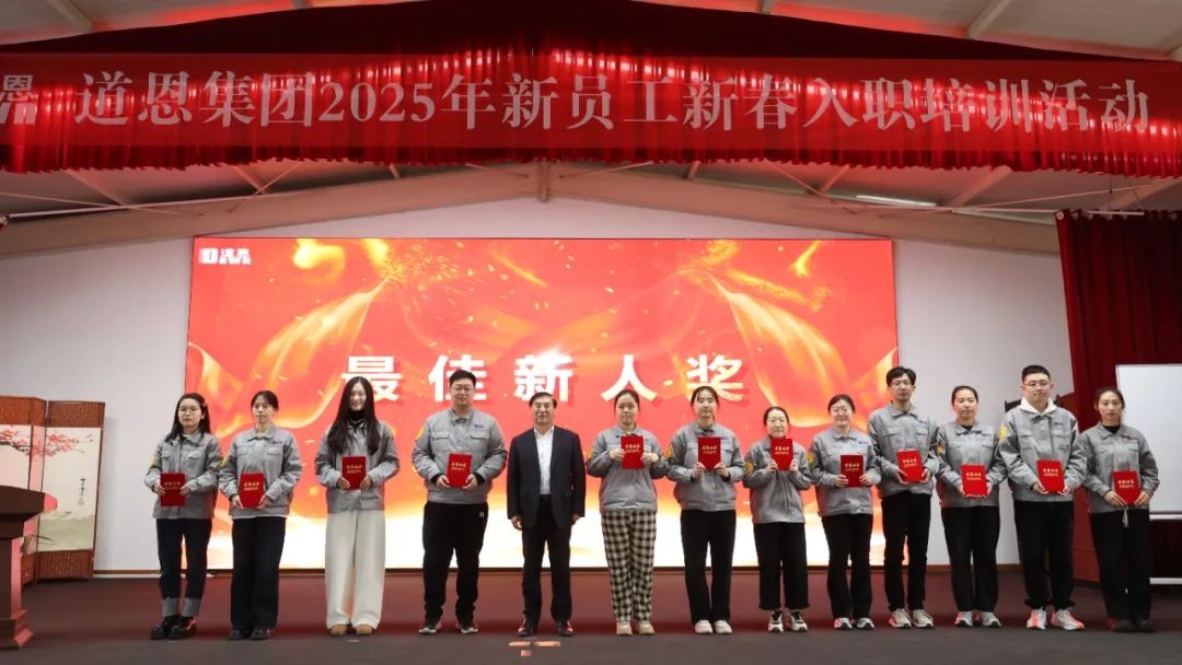 2月14日,為期5天的道恩集團2025年新員工新春入職培訓活動在道恩商學院圓滿落幕。道恩集團董事長、總裁,道恩商學院院長于曉寧出席結業儀式并講話。據介紹,今年的新春招聘工作自1月中旬啟動,經過層層選拔,百余人脫穎而出,順利入職。