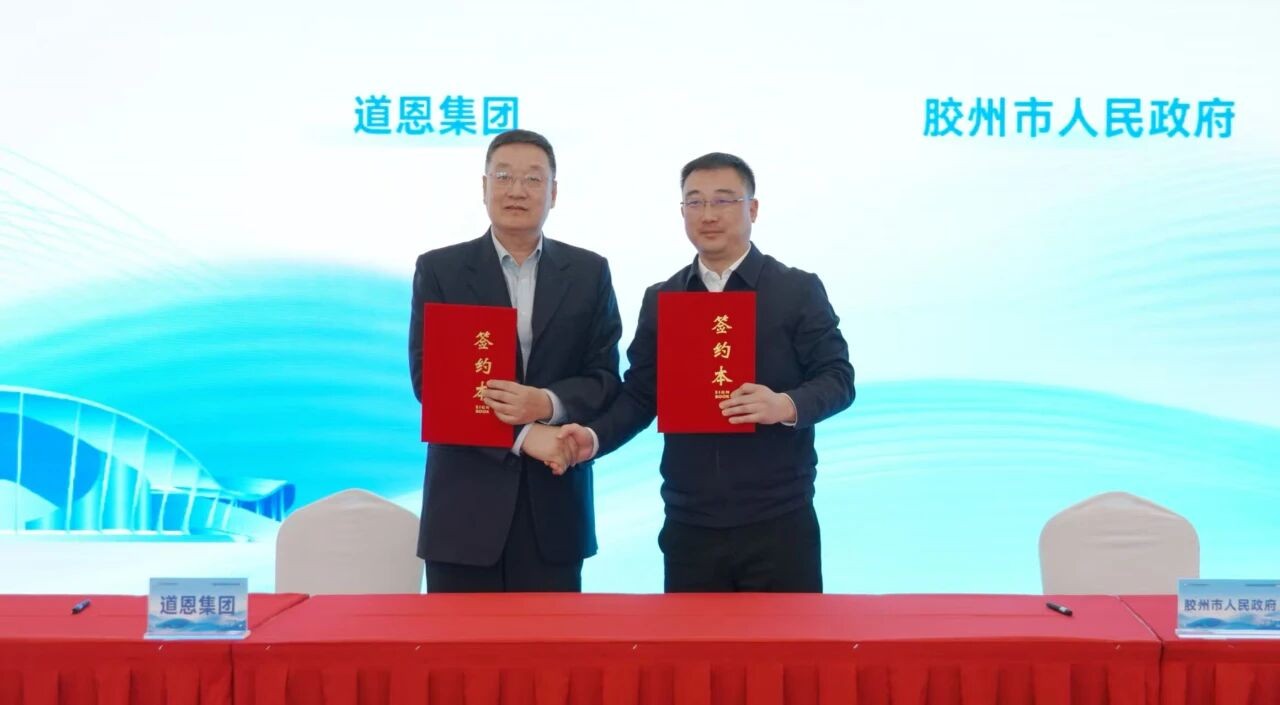 11月21日,道恩集團上合示范區項目簽約儀式在青島膠州舉行,青島市委常委、上合示范區黨工委書記、膠州市委書記張新竹;上合示范區黨工委委員、管委會副主任,膠州市政府黨組成員、副市長,上合卡奧斯新城建設工作指揮部總指揮周林;海爾智家副總裁、全球采購總經理李洋;道恩集團董事長、總裁于曉寧,副總裁宋慧東;道恩股份總經理田洪池出席活動。