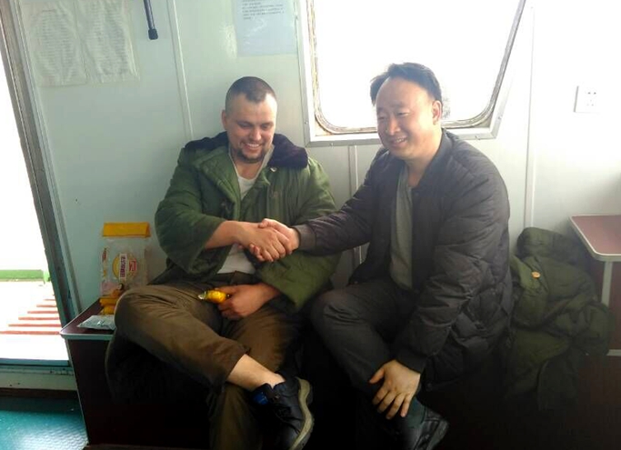 “道恩7”貨輪上一片忙碌,船員為其提供棉衣、食物和淡水。經(jīng)過簡短溝通得知,落水者為烏克蘭人。被救后,他口中一直不停地用英語說著感謝。隨后,船長向天津海事局船舶交通管理中心報告救人成功的喜訊,并協(xié)調(diào)公安、邊防、口岸等部門,妥善移交該外籍船員?!罢l遇見這樣的事,都會這么做,我們義不容辭?!泵鎸Σ稍L,船長李建銳如是說。