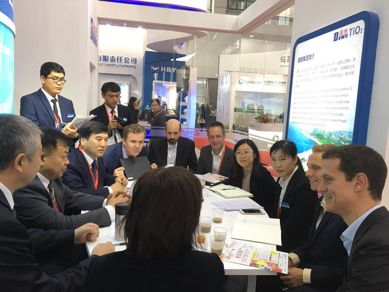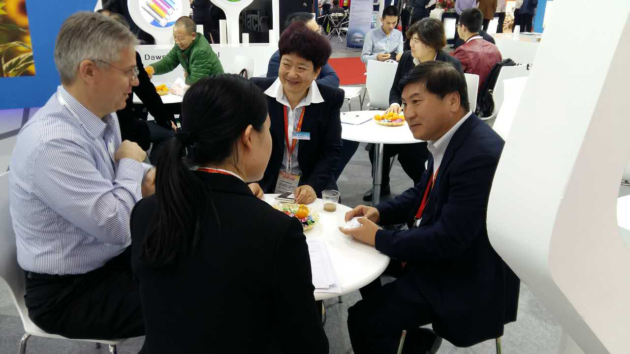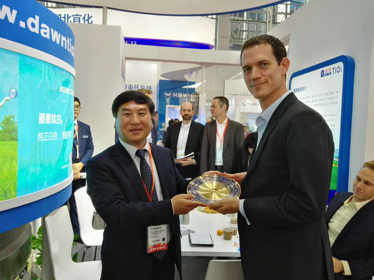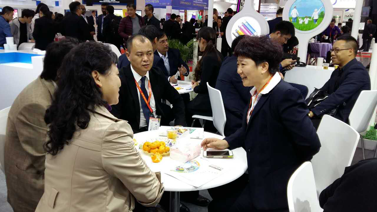 作為世界第三大油墨生產(chǎn)商,盛威科油墨有限公司全球采購(gòu)總監(jiān)NevenBarctel慕名訪問(wèn)道恩展臺(tái),于曉寧總裁與客人進(jìn)行友好交流。雙方就建立長(zhǎng)期戰(zhàn)略合作伙伴關(guān)系達(dá)成共識(shí),共同研發(fā)油墨專用鈦白粉,成為盛威科全球統(tǒng)一牌號(hào)。道恩集團(tuán)常務(wù)副總裁索延輝用流利的日語(yǔ)和日本立邦洽談2017年合作事宜,經(jīng)過(guò)技術(shù)交流,最終確定明年第一季度訂單。