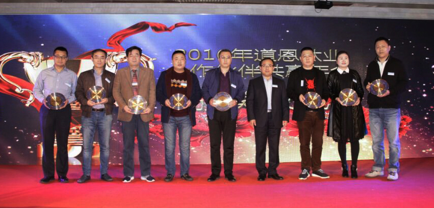 年會還對2016年戰(zhàn)略合作伙伴、2016年優(yōu)秀經(jīng)銷商及2016年優(yōu)秀合作伙伴進(jìn)行了頒獎,以表彰他們?yōu)榈蓝麾仒I(yè)發(fā)展做出的積極貢獻(xiàn)。正是因為眾多優(yōu)秀合作伙伴、優(yōu)秀經(jīng)銷商、杰出市場開拓者的努力,道恩鈦業(yè)才擁有優(yōu)異的市場表現(xiàn),實現(xiàn)銷售再創(chuàng)新高。