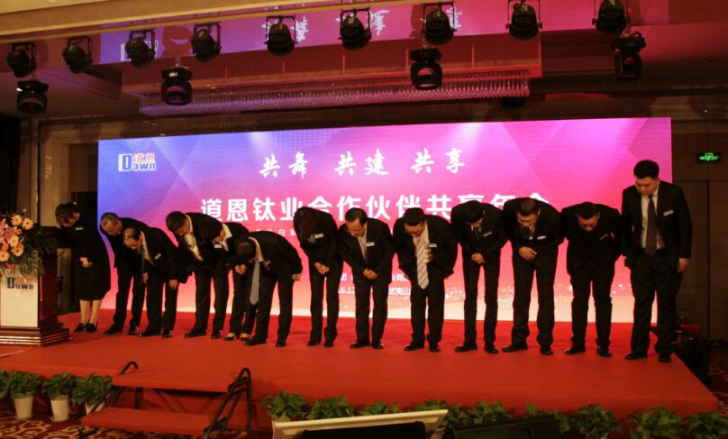 于曉寧總裁指出,道恩鈦業(yè)的發(fā)展,與各位合作伙伴的長期合作是分不開的,大家的信任和支持是道恩鈦業(yè)持續(xù)發(fā)展的重要動力。他把獨具道恩特色的“三共”理念分享給合作伙伴,呼吁大家在“共舞”中步調(diào)一致、方向一致、目標(biāo)一致,凝聚起攜手“共建”的強(qiáng)大力量,建設(shè)好道恩鈦業(yè)這個干事創(chuàng)業(yè)的平臺,“共享”平臺帶來的各項資源優(yōu)勢、發(fā)展機(jī)遇和豐碩成果。