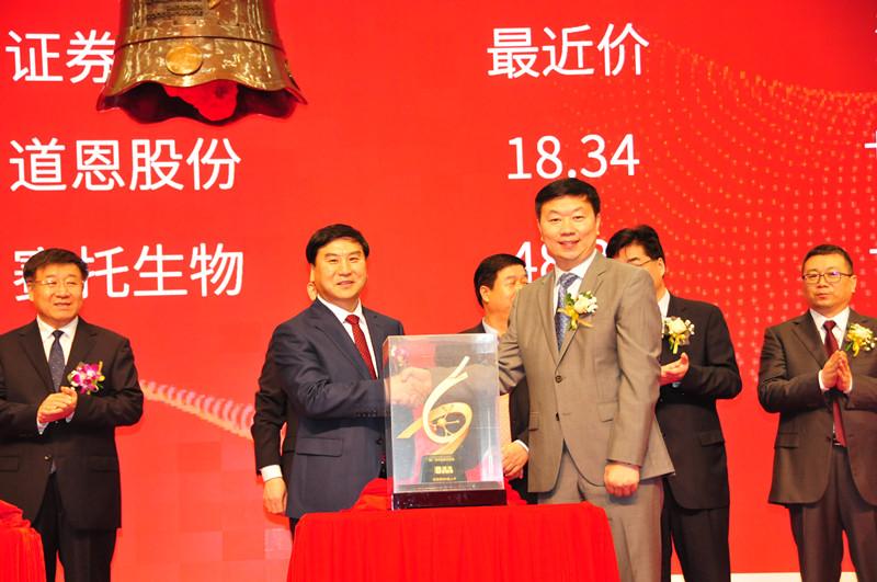 1月6日,山東道恩高分子材料股份有限公司在深圳證券交易所成功掛牌上市,成為煙臺第41家、龍口第10家登陸資本市場的企業。煙臺市委常委、宣傳部長徐少寧,龍口市委書記韓世軍出席掛牌儀式。