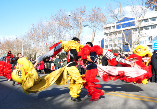 道恩秧歌隊(duì)以強(qiáng)大的陣容表演了大秧歌、舞獅子等市民喜聞樂見的節(jié)目。大秧歌以粗獷奔放、熱烈歡快、風(fēng)趣幽默的表演風(fēng)格,一路洋溢著新年的喜慶景象;舞獅子表演精彩絕倫,為新春增添了濃郁的歡樂氣氛,不僅表達(dá)了道恩人對(duì)廣大市民、社會(huì)各界的新春祝福,也充分展現(xiàn)出了道恩人意氣風(fēng)發(fā)、拼搏向上的風(fēng)采。