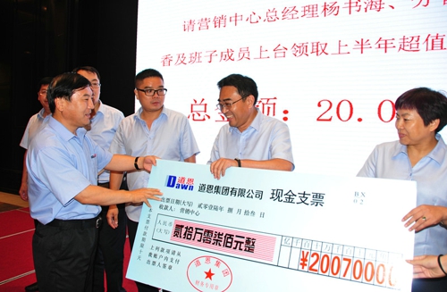 8月13日,道恩集團2016年度半年工作會議在山東龍湖大酒店隆重召開。在當晚舉行的總裁晚宴上,2016年上半年超值分享會吸引了與會人員的目光。