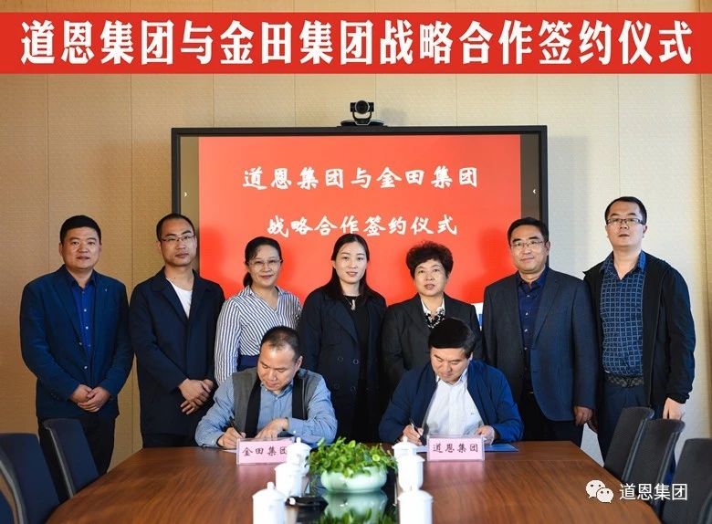 10月12日上午,道恩集團與金田集團戰略合作簽約儀式,在道恩集團總部一號辦公樓4樓視頻會議室舉行,道恩集團董事長于曉寧、金田集團董事長方文彬出席活動。