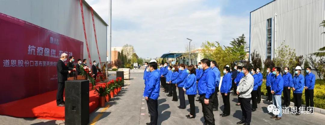 4月26日,道恩股份舉行口罩布聚丙烯熔噴料擴(kuò)產(chǎn)項(xiàng)目投產(chǎn)儀式。該項(xiàng)目達(dá)產(chǎn)后,道恩股份(母公司)聚丙烯熔噴專(zhuān)用料日產(chǎn)量達(dá)到1200噸,可滿(mǎn)足12億只口罩的生產(chǎn)需要,最大限度助力國(guó)內(nèi)疫情防控和復(fù)工復(fù)產(chǎn),積極支援全球戰(zhàn)“疫”。