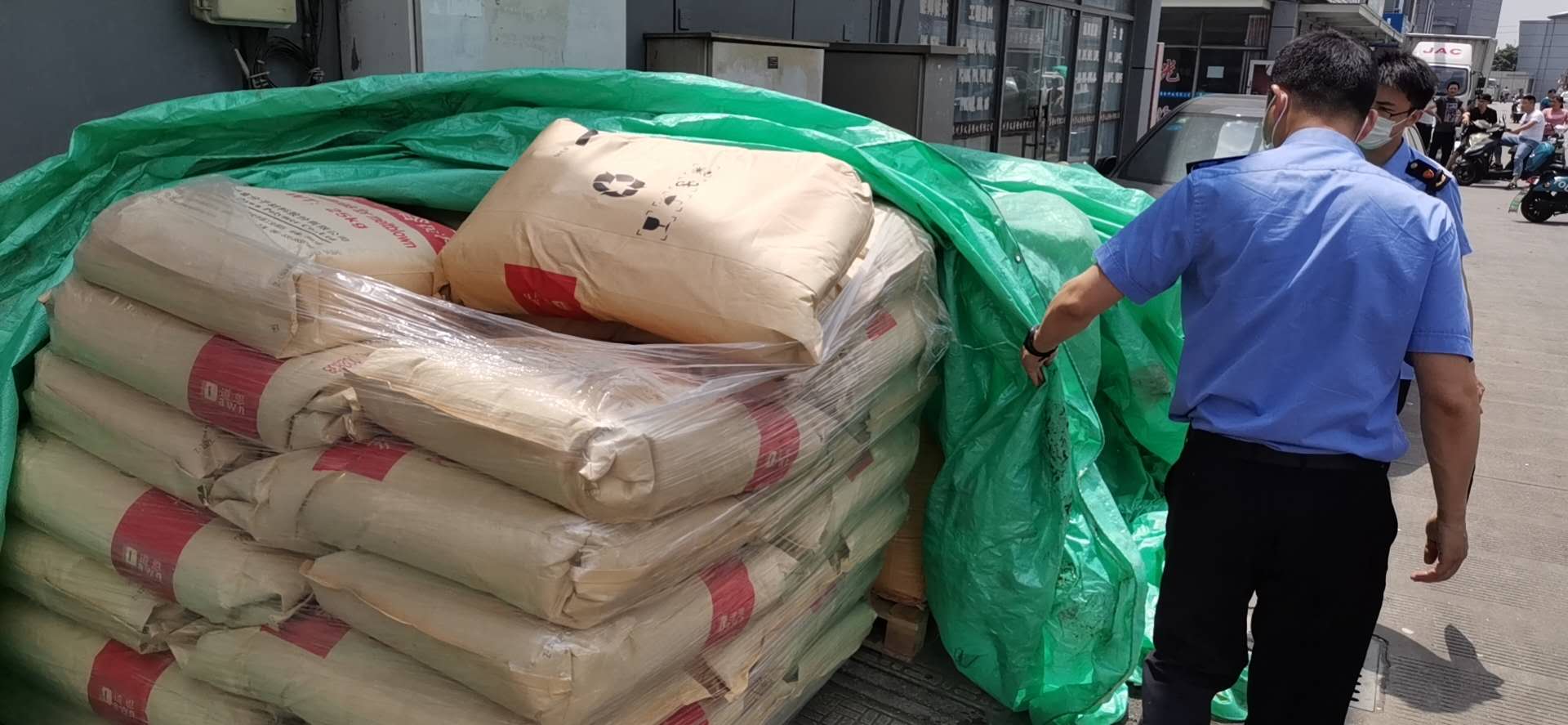 接到舉報后,道恩打假小組當即追蹤假貨源頭,及時聯(lián)系當?shù)卣嚓P(guān)執(zhí)法部門聯(lián)合行動。5月13日,道恩打假小組與平湖市政府部門相關(guān)執(zhí)法人員一同前往現(xiàn)場。經(jīng)現(xiàn)場檢查,認定被查獲的“道恩”牌聚丙烯熔噴專用料為涉嫌商標侵權(quán)的產(chǎn)品,當場查扣涉嫌侵權(quán)聚丙烯熔噴專用料7噸,涉案貨值約70萬元。