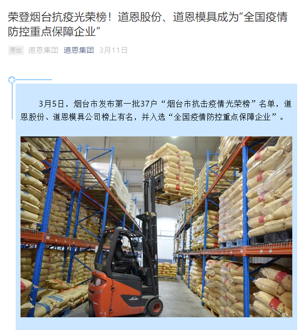 據道恩集團投融資管理部部長王曉莉介紹,該筆貼息是在人民銀行專項再貸款支持金融機構提供優惠利率信貸支持的基礎上,由財政部門再按企業實際獲得貸款利率的50%進行貼息。經過貼息后,道恩股份該筆貸款業務的實際融資成本只有1.275%,有效降低了疫情防控重點保障企業融資成本,為打贏疫情防控保衛戰提供了有力支持。