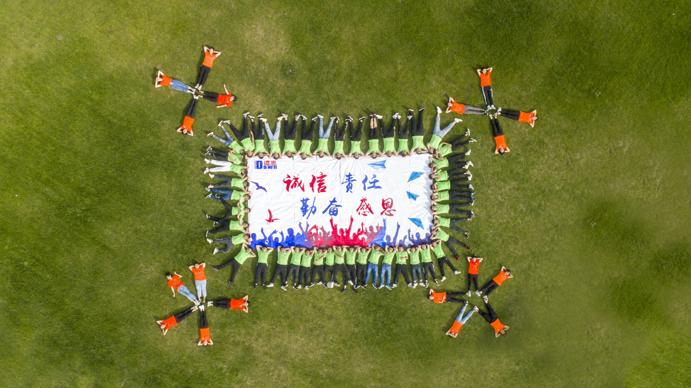 在道恩湖公園,每個人都用手中的畫筆,協(xié)力為團隊巨畫增色添彩,直至最后震撼呈現(xiàn)。道恩經(jīng)典的紅與藍結(jié)合,融入“誠信、責任、勤奮、感恩”的核心價值觀,企業(yè)文化在大家心中生根發(fā)芽。