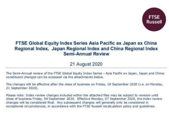 8月21日晚間,全球第二大指數公司富時羅素(FTSE Russell)在其官網宣布,將道恩股份納入其全球指數,此次入選結果將于9月21日開盤前生效,這標志著道恩股份受到國際投資者的關注。