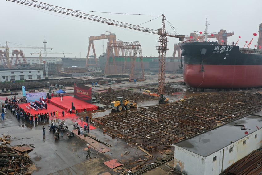 嚴林華董事長在致辭中表示,“道恩17”輪開工以來,振鶴人群策群力,弘揚匠心精神,付出了辛勤的汗水和智慧。“中國航運事業是可持續發掘的藍海,以‘道恩17’輪為紐帶,相信在未來的日子里,振鶴船業能與道恩將海運事業推向新的高度。”