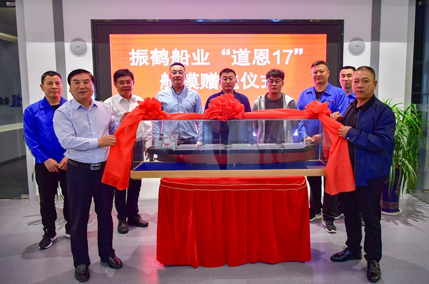 2020年,振鶴船業向道恩贈送“道恩17”輪船模