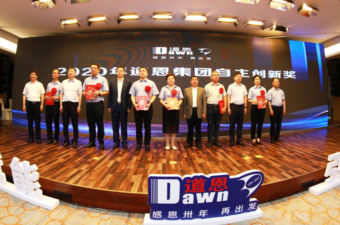 道恩股份總經理田洪池博士作“道恩集團科技創新發展歷程及道恩創新能力和成果主題報告”,對道恩30周年科技發展歷程進行回顧。隨后,與會嘉賓與領導為道恩集團科技創新功勛人物、科技創新杰出人物以及2020年度自主創新獲獎項目和科學技術獎勵項目進行頒獎。