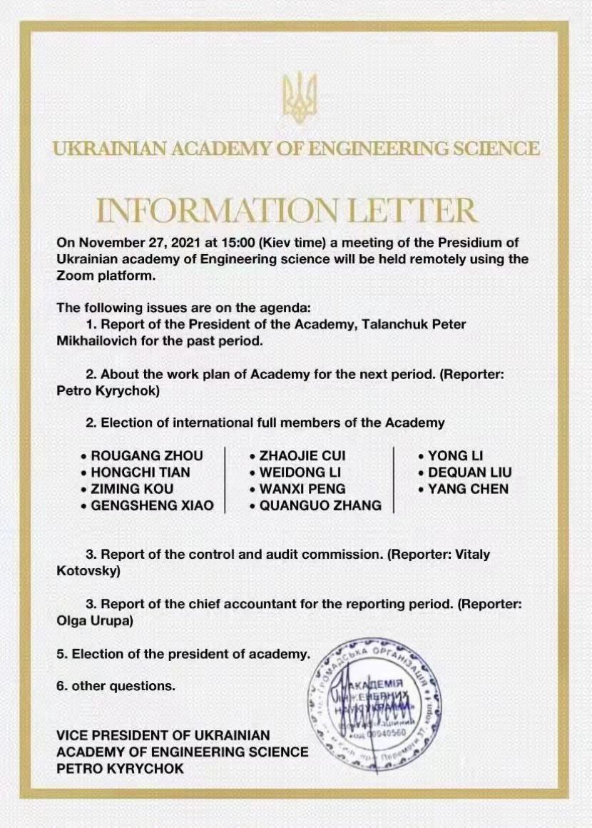 11月27日晚上,烏克蘭國家工程院主席團會議宣布了2021年度當選院士名單,道恩股份總經(jīng)理田洪池博士當選為烏克蘭國家工程院外籍院士,這是山東煙臺首位來自民營企業(yè)的院士。據(jù)悉,與田洪池一同當選的,還有國內(nèi)高校、企業(yè)的其他10位學(xué)者。