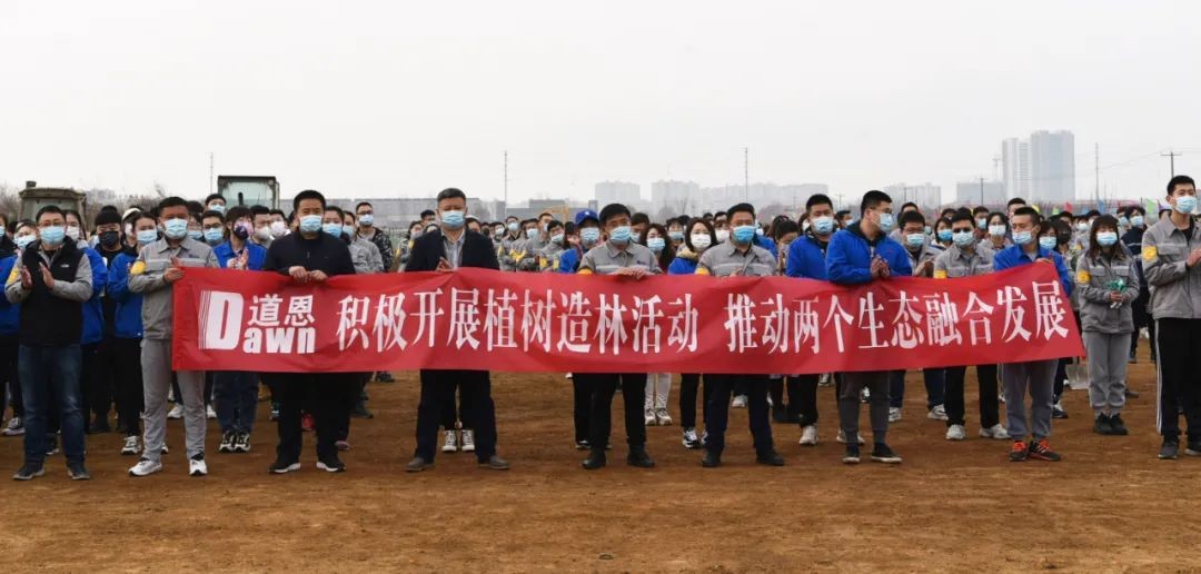 植樹造林,國之大計。于曉寧董事長表示,道恩集團要堅持綠色發(fā)展之路,在科技創(chuàng)新領域推動綠色低碳化發(fā)展,積極響應國家“雙碳”目標,研發(fā)以新能源、可降解、生物基為代表的市場前沿新材料。以兩個國家級綠色工廠為基礎,不斷打造產(chǎn)品鏈、企業(yè)鏈、產(chǎn)業(yè)鏈;以龍口市新材料科技產(chǎn)業(yè)園為依托,堅持園區(qū)“一精三好”的經(jīng)營方針,做好“美化、綠化、亮化、凈化”工程,共筑生態(tài)文明之基,打造自然生態(tài)和產(chǎn)業(yè)生態(tài),積極推動“兩個生態(tài)”融合發(fā)展。