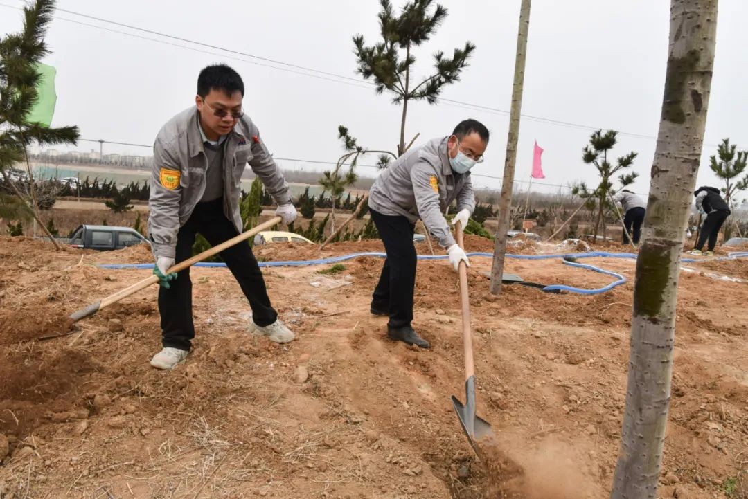 經(jīng)過一上午的辛勤勞動,成功栽種黑松、龍柏、榆樹、槐樹、毛白楊、火炬樹近千棵。新栽的樹苗整齊有序、迎風挺立,空曠的土地憑添新意、顯露生機,為春光明媚的三月增添了一抹盎然的綠意。