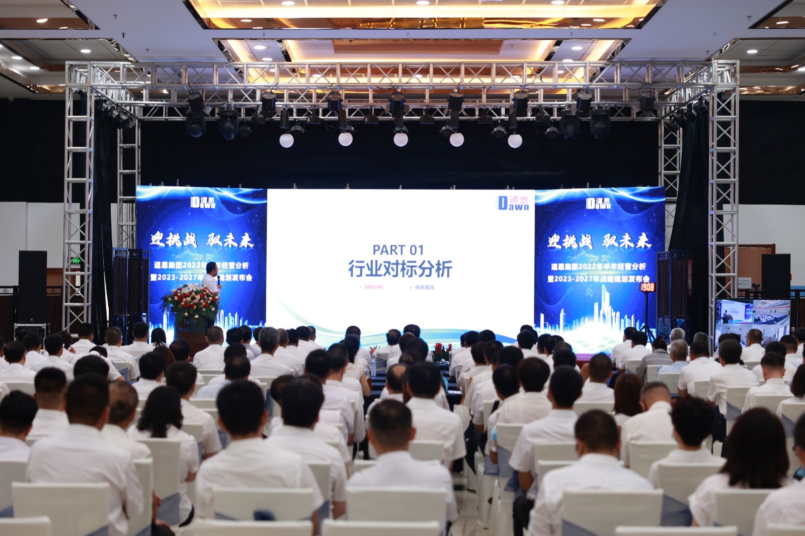 ?7月30日,道恩集團在道恩湖畔酒店召開主題為“迎挑戰(zhàn) 馭未來”的2022年半年經(jīng)營分析暨2023-2027年戰(zhàn)略規(guī)劃發(fā)布會,旨在總結(jié)分析上半年經(jīng)營管理工作,發(fā)布集團2023-2027年戰(zhàn)略,堅定關(guān)鍵之年任務(wù)圓滿完成的信心。道恩集團董事長、總裁于曉寧出席會議并講話,道恩集團董事會成員、領(lǐng)導(dǎo)班子成員、總監(jiān)級以上干部及青年干部培訓班成員參加會議。會議在北京、上海、重慶、浙江設(shè)視頻分會場。