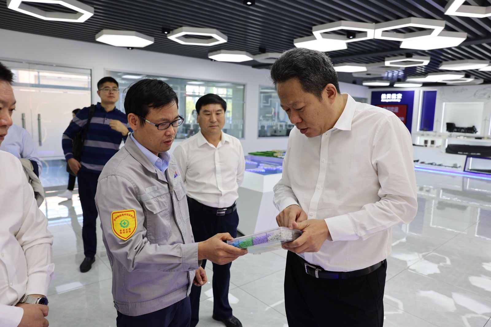 9月20日,河南投資集團有限公司副總經(jīng)理、城發(fā)環(huán)境股份有限公司黨委書記、董事長朱紅兵一行來道恩集團訪問考察,就循環(huán)再生產(chǎn)業(yè)發(fā)展進行交流。中國物資再生協(xié)會再生塑料分會秘書長王永剛參加活動。道恩集團董事長、總裁于曉寧,道恩股份總經(jīng)理田洪池及相關負責人陪同活動。