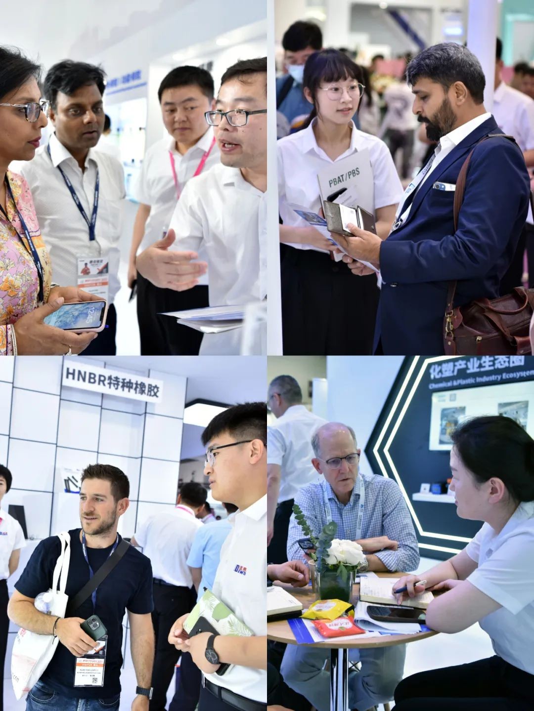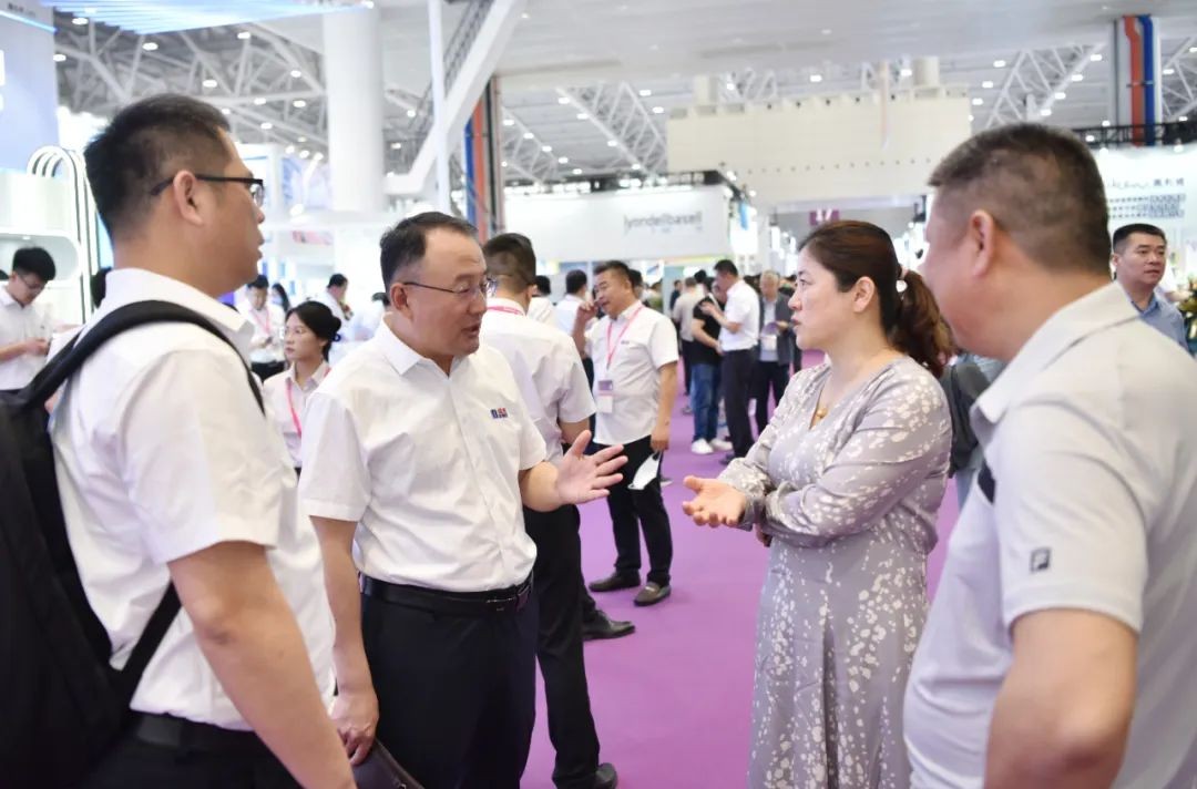 在展位現(xiàn)場,不同位置的電子屏滾動(dòng)播放著道恩集團(tuán)中英文版宣傳片、龍口市新材料科技產(chǎn)業(yè)園宣傳片、俺搜業(yè)務(wù)宣傳片及有關(guān)核心產(chǎn)品、經(jīng)營理念、美好愿景的動(dòng)圖視頻。參展人員熱情接待客戶,詳細(xì)解答專業(yè)問題。來訪客戶中,既有美國、韓國、印度、波蘭、巴西、越南、泰國、俄羅斯等國家的知名企業(yè),也有國內(nèi)央企、大型民企等合作伙伴,中國塑料加工工業(yè)協(xié)會(huì)等協(xié)會(huì)領(lǐng)導(dǎo)蒞臨道恩展位,了解產(chǎn)品研發(fā)和應(yīng)用情況。