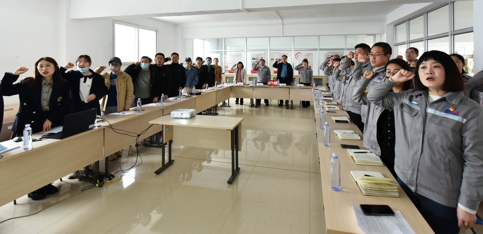 “我志愿加入中國共產(chǎn)黨……”是日上午8時(shí)30分,道恩集團(tuán)有限公司直屬黨支部書記張曉艷與全體黨員,面對黨旗,高舉右拳,重溫入黨誓詞,正式拉開了活動序幕。龍口市委編辦黨支部書記鄒方敏帶領(lǐng)與會黨員,共同學(xué)習(xí)了習(xí)近平總書記在第十四屆全國人民代表大會第一次會議上的講話精神。