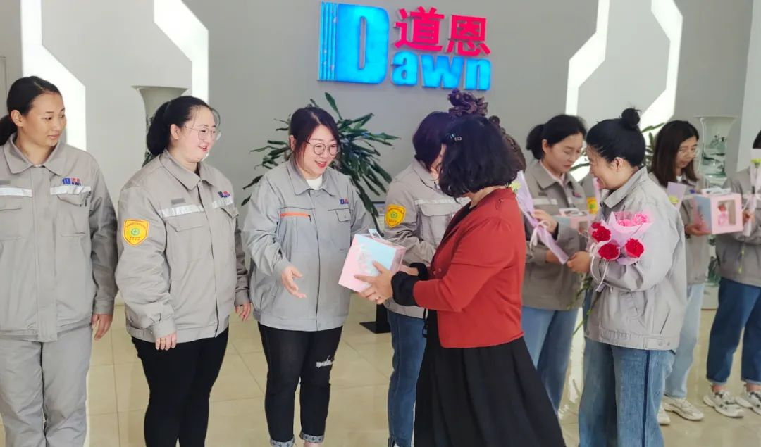 活動結束時,王澤方常務副總經理為大家送上鮮花并合影留念,記錄下此刻的心情,也記錄下對母親深刻的愛。最后,他帶領有關領導深入一線,為堅守在崗位的母親送上祝福,對他們為道恩的辛勤付出表示感謝。