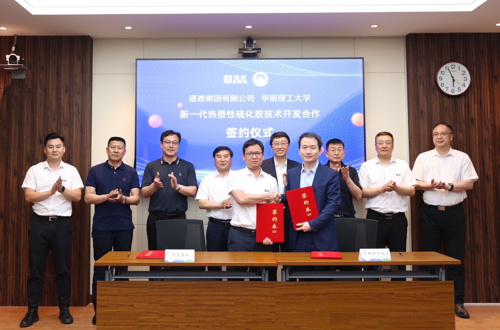 推動產(chǎn)學(xué)研用合作,促進校企共贏發(fā)展。未來,道恩集團將在“推進創(chuàng)新鏈產(chǎn)業(yè)鏈資金鏈人才鏈深度融合,不斷提高科技成果轉(zhuǎn)化和產(chǎn)業(yè)化水平”過程中,充分發(fā)揮華南理工大學(xué)的科研實力與人才優(yōu)勢,結(jié)合企業(yè)的應(yīng)用平臺和市場資源,在橡膠材料領(lǐng)域取得新進展、實現(xiàn)新突破、結(jié)出新碩果,打造國內(nèi)外學(xué)術(shù)研究與合作的重要基地,雙方攜手為我國的橡膠工業(yè)發(fā)展貢獻更大的力量。