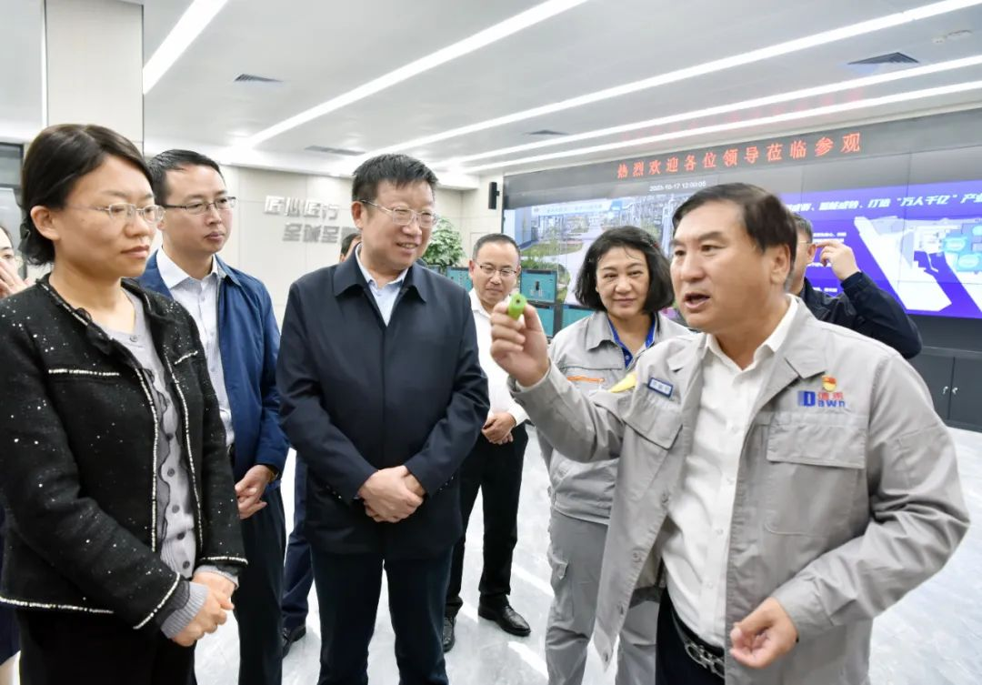 山東省工信廳化工產(chǎn)業(yè)處處長牟東慧,煙臺(tái)市工信局黨組成員、副局長張正功,龍口市委副書記、代市長張紹鵬,副市長趙靜,市政協(xié)副主席、工信局局長霍樹春,道恩集團(tuán)董事長、總裁于曉寧,常務(wù)副總裁肖輝陪同調(diào)研。