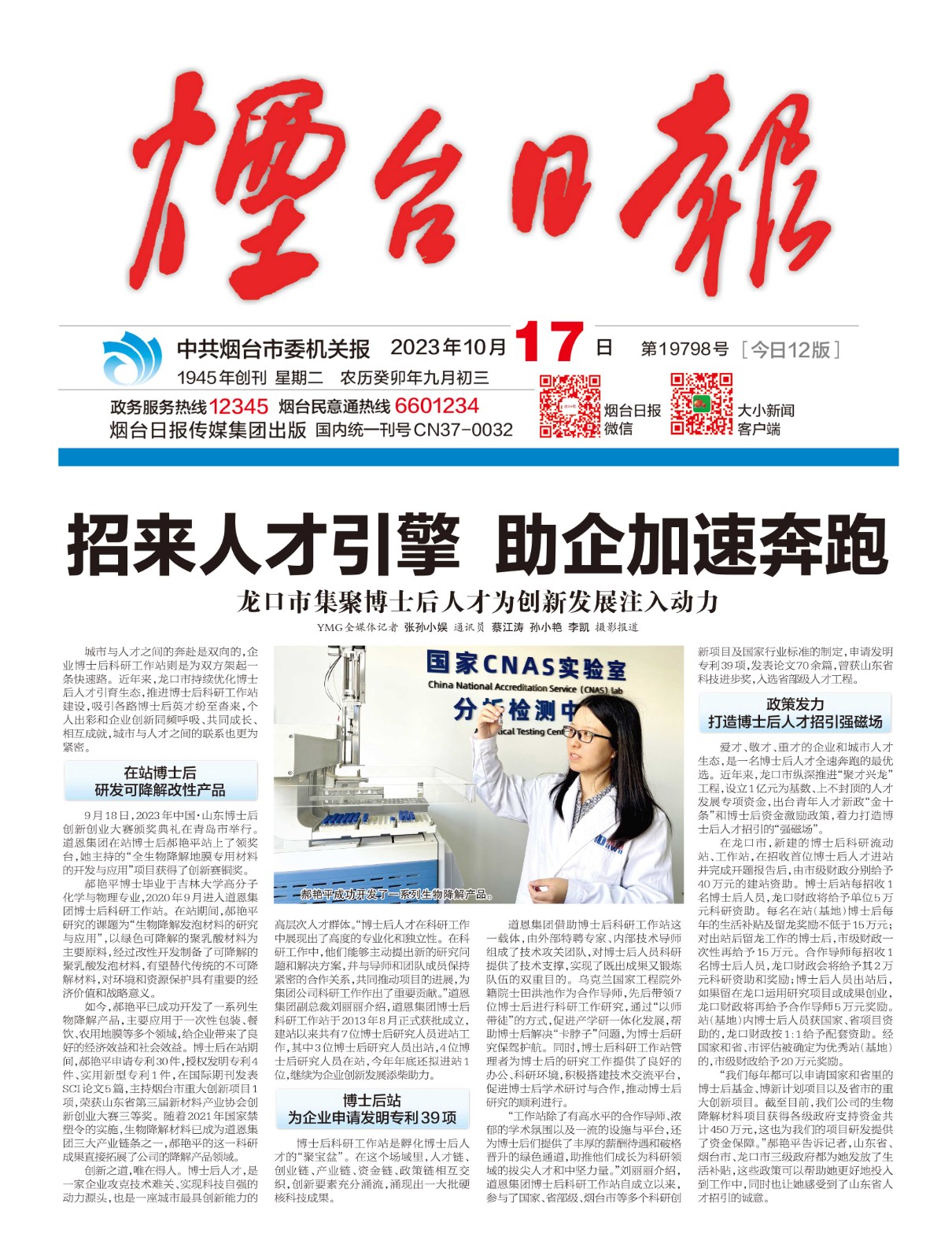 “我們每年都可以申請國家和省里的博士后基金項目、博新計劃。近兩年我們的生物降解材料項目獲得了政府的支持資金450萬,這些資金能夠更好支持我們項目的順利進(jìn)行。”郝艷平說,山東省、煙臺市、龍口市三級政府都為她發(fā)放了生活補(bǔ)貼,這些政策讓她感受到了山東省人才招引的誠意,激發(fā)了立足崗位創(chuàng)新創(chuàng)造的熱情。